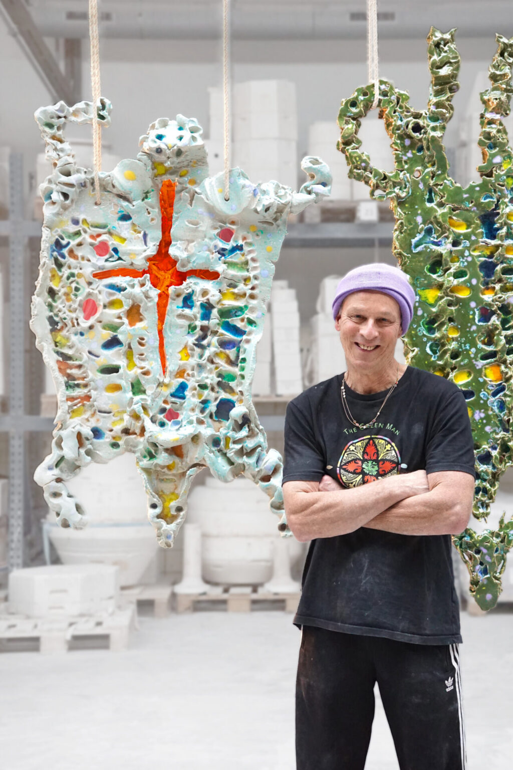 Anno 2025, na bijna 40 jaar kunstenaarschap, voelde hij de behoefte om terug te keren naar zijn roots en te onderzoeken hoe zijn passie van destijds, het dode wild, zich vandaag de dag vertaalt in een combinatie van klei en glas. “Het naschilderen van dode dieren en de glas-in-lood periode waarin ik meer dan 20 ramen heb gemaakt, wil ik verenigen door met keramiekatelier Cor Unum in klei een opengesperde os te gaan boetseren en glazuren en in zijn binnenste glas-in-loodfragmenten te plaatsen. Om zo een ‘sfeerbeeld’ te creëren van keramiek en glas-in-lood ineen; van aardse materie en doorschijnende lichtstralen.”