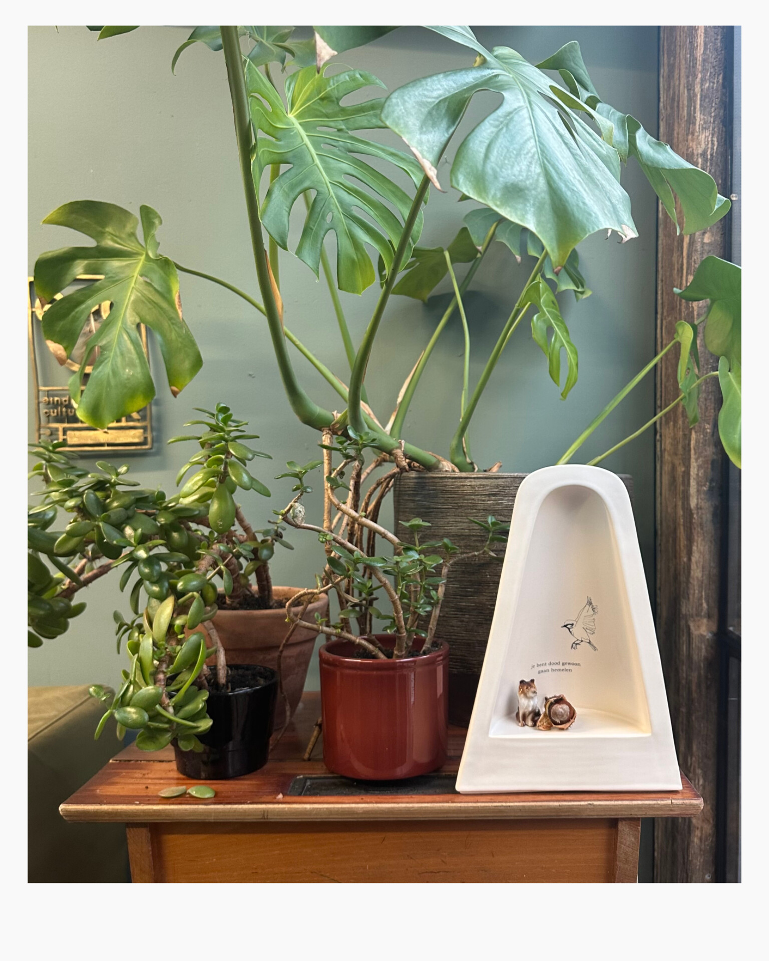 Met de Kapel urn creëren we een speciale plek in huis om een dierbare te herinneren en de mooie momenten te koesteren. Deze urn is voorzien van een ontroerende dichtregel van Henk van Zuiden en een lieve tekening van het roodborstje door Maartje van den Noort.